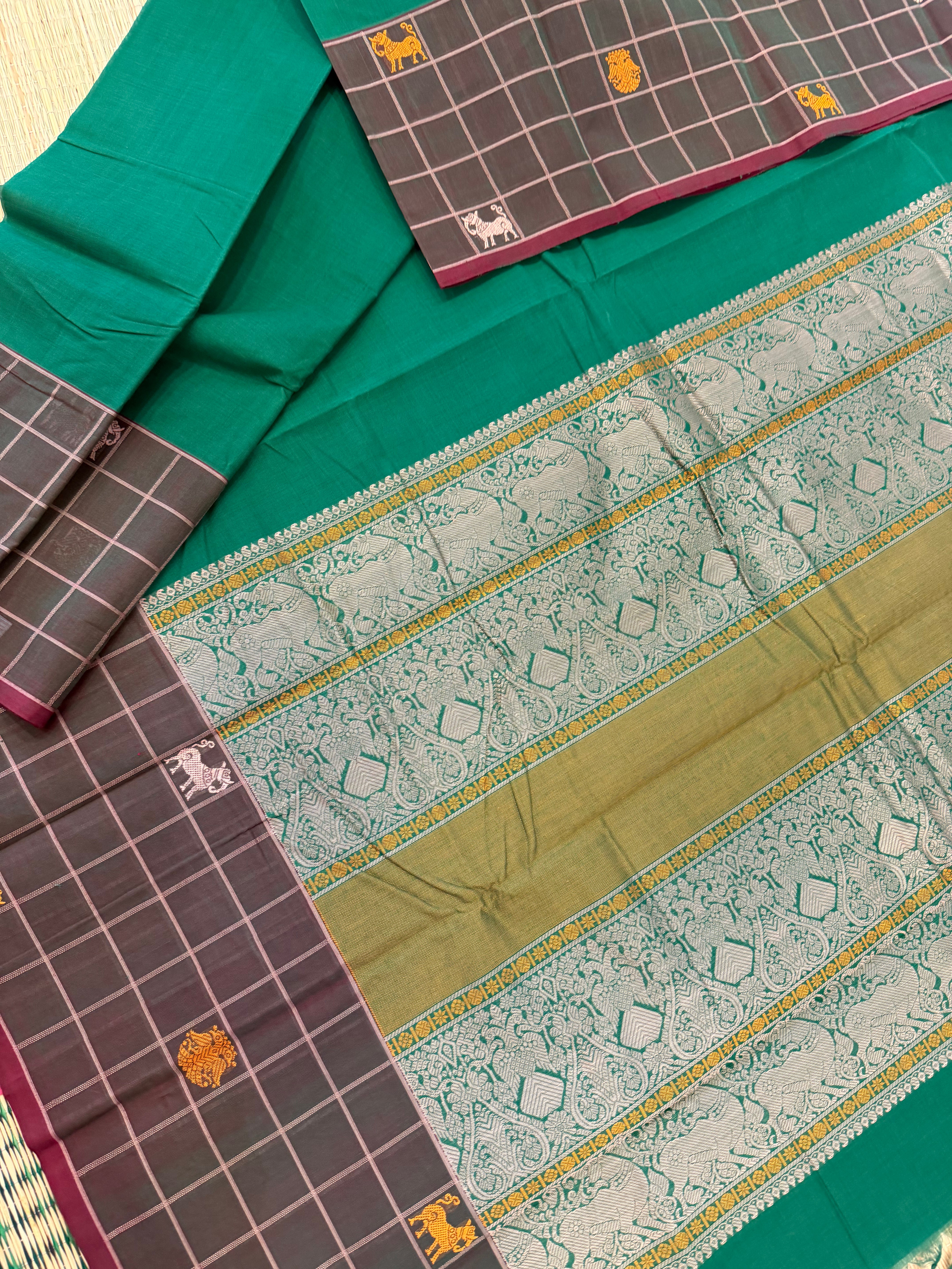 Handwoven Tussar with Kantha blouse